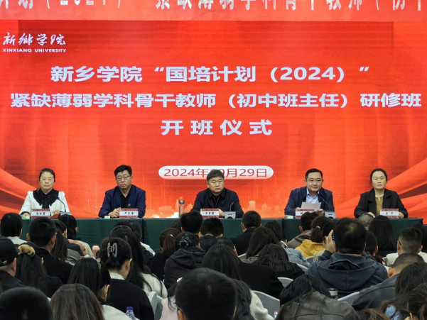 10月29日上午,必赢766net手机版2024年“国培计划”紧缺薄弱学科骨干教师(初中班主任)研修班开班仪式在新乡宾馆举行。必赢766net手机版校长王孝俊,校长办公室主任姚进才,教育科学学院院长、中小学教师校长研修院执行院长牛长海,来自郑州、洛阳、鹤壁、濮阳、许昌、漯河、信阳、周口等地200名骨干教师参加开班仪式。仪式由必赢766net手机版教育科学学院副院长、必赢766net手机版附属中学党支部书记校长杨红霞主持。