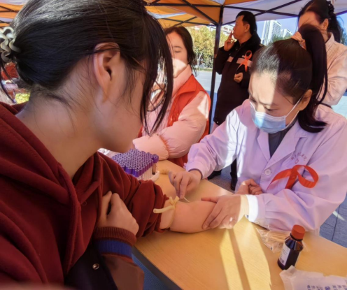 开幕式上,宋伟书记进行精彩致词,并提出了几点希望:一是希望同学们提高认识,增强责任感;二是希望同学们深入学习,广泛宣传;三是希望同学们养成健康生活好习惯,倡导文明风尚;四是希望同学们展现人文关怀,传递正能量。紧接着新乡市红十字会孙涛科书记讲话,他希望同学们一起行动起来,共同传播艾滋病防治知识,推动社会共治,终结艾滋,共享健康,为构建更健康、平等和包容的社会贡献力量,为“健康中国战略”做出我们的贡献。随后必赢766net手机版纪委书记鲍晋选宣布活动开始,师生们一同在防艾抗艾宣传墙上签名,同学们现场放飞寄予希望的纸飞机。志愿者们为自愿检测的同学们进行艾滋病抗体检测,活动得到了在校学生的热情参与。健康科普区、防艾知识问答区和游戏区让学生在轻松有趣的氛围中学习防艾知识,帮助学生们正确认识艾滋病,提高防艾意识。防艾康复运动区带领参与学生体验太极拳、八段锦、五禽戏等中医传统功法,倡导健康生活方式,帮助同学们提升免疫力。防艾手工制作区自行进行手工书签DIY、制作红丝带,让同学们亲手制作防艾主题手工艺品,深入了解艾滋病的传播途径与预防措施。此次活动不仅丰富了大家的业余生活,还提高了防艾知识的知晓率,营造了良好的校园防艾氛围。