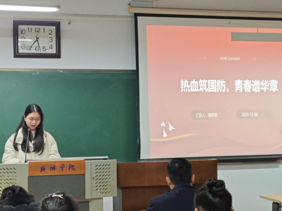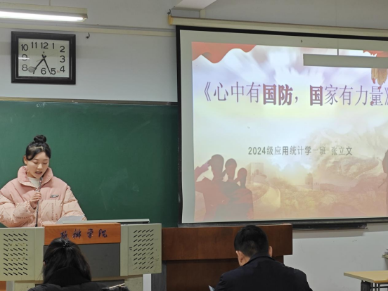 12月8日,数学与统计学院在A03-403开展“我心中的国防”主题演讲比赛。学院党委副书记王仁举、学工办主任张泽潭、分团委书记陈立雪、全体辅导员以及学生代表80余人参加本次活动。