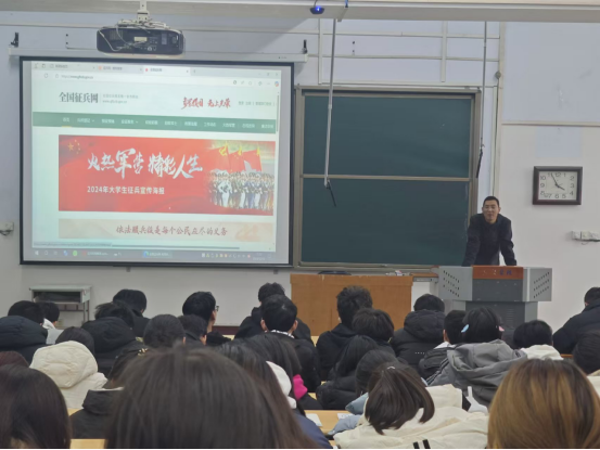 为进一步宣传国家征兵政策,激发学院适龄青年大学生投身军营、报效祖国的热情,12月10日下午,管理学院开展国防教育暨2024年下半年大学生征兵政策宣讲活动。经广泛动员宣传,学院2025届毕业生共计150人参与活动。活动由学院征兵专管员朱修平老师主持。