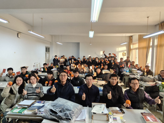12月13日下午,为了激励即将参加考研的机电工程学院学子们,增强他们的信心与动力,机电工程学院党委书记张烨,院长周宁,党委副书记陈云飞,副院长连黎明、杜川以及毕业班辅导员刘翔、曹文平、李姣姣共同来到A06考研自习室,为学子们送上了一份特别的礼物——橙子和手写贺卡,心想事“橙” 一定能行,以此表达对他们的深切关怀与热切期盼。