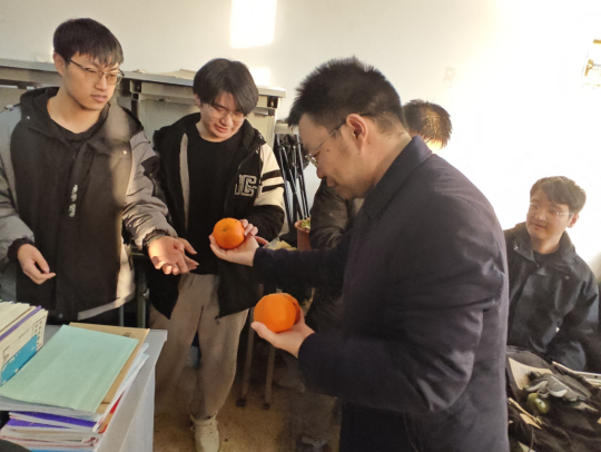 随后,领导与老师们逐一走到每位考研学子的座位旁,亲手将贺卡和橙子递到他们手中。每一张贺卡上都写着老师们对她们的个性化鼓励与祝福,每一个橙子都承载着老师们对他们的深切关怀与真切祝愿。