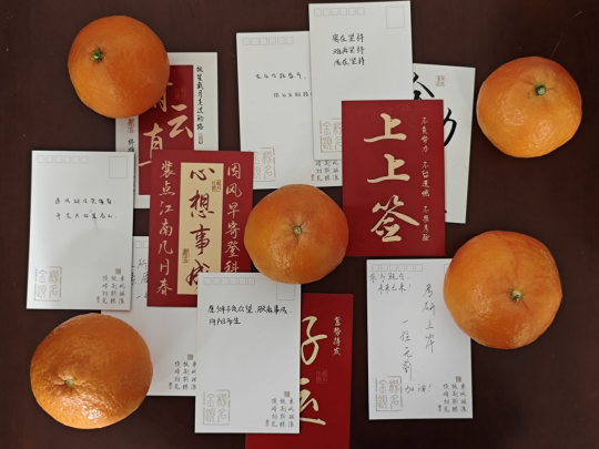 学院领导与老师们精心准备的橙子寓意着“心想事成,大吉大利”,而亲自手写的一张张贺卡则满载着深情厚意,每一份礼物都凝聚着老师们对考研学子的殷切期望和美好的祝福。