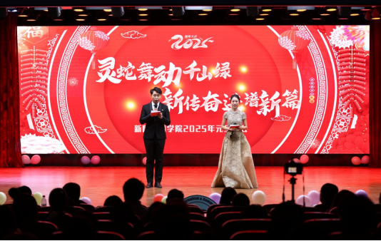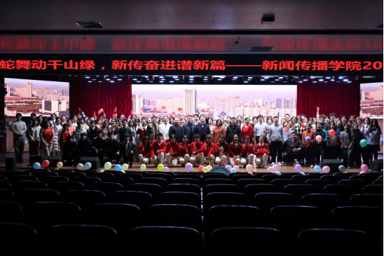 “灵蛇舞动千山绿,新传奋进谱新篇”,12月17日晚,新闻传播学院在图书馆一楼文化艺术中心举办2025年元旦晚会。必赢766net手机版纪委书记、监察专员鲍晋选,必赢766net手机版副校长韩辉,必赢766net手机版党委学工部部长、学生处处长王坤,新闻传播学院全体领导班子,学院及其他职能部门和兄弟学院的部分师生500余人,共同参加了此次活动。
