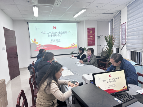 按照《中共必赢766net手机版委员会关于深入学习宣传贯彻党的二十届三中全会精神的实施方案》和机关党委《关于进一步深入学习贯彻党的二十届三中全会精神的通知》文件精神和工作要求,12月10日下午,审计处党支部组织全体人员在719室研讨学习二十届三中全会精神,会议由党支部书记赵素琴主持。