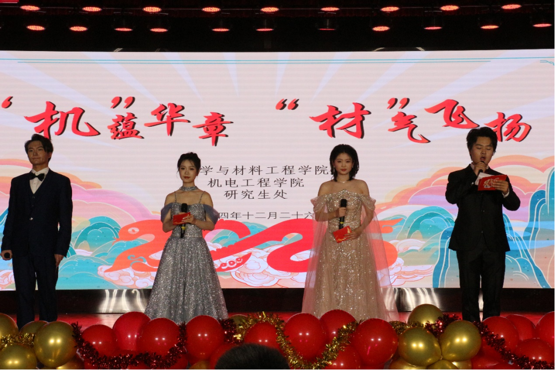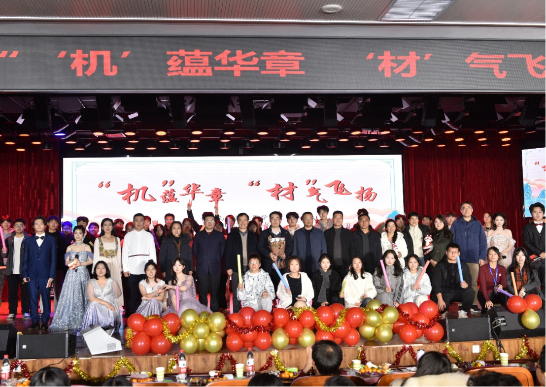 挥别旧岁龙吟去,喜迎新辰蛇舞来。随着新年的脚步日益临近,机电工程学院携手化学与材料工程学院和研究生处,于12月26日晚在校图书馆南楼文化艺术中心,共同举办了一场以“‘机’蕴华章,‘材’气飞扬”为主题的元旦晚会。晚会现场灯火辉煌,气氛热烈,必赢766net手机版副校长张银堂,党委学工部部长、学生处处长王坤,校纪委第二纪检监察室主任毛克乐,宣传部副部长高峥,团委副书记毛戎,以及机电工程学院和化学与材料工程学院全体领导班子等共500余人欢聚一堂,共迎新年曙光。